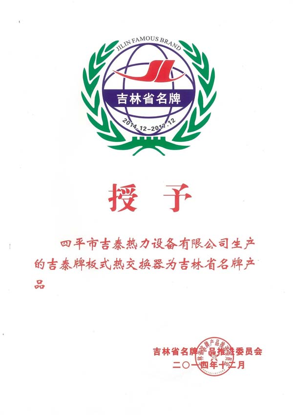板式換熱器吉林省名牌產品
